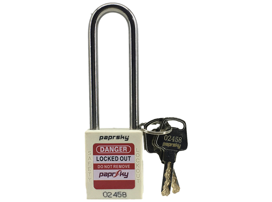 Lockout Padlock long white plastic shackle PS-LOTO-PPNR-76